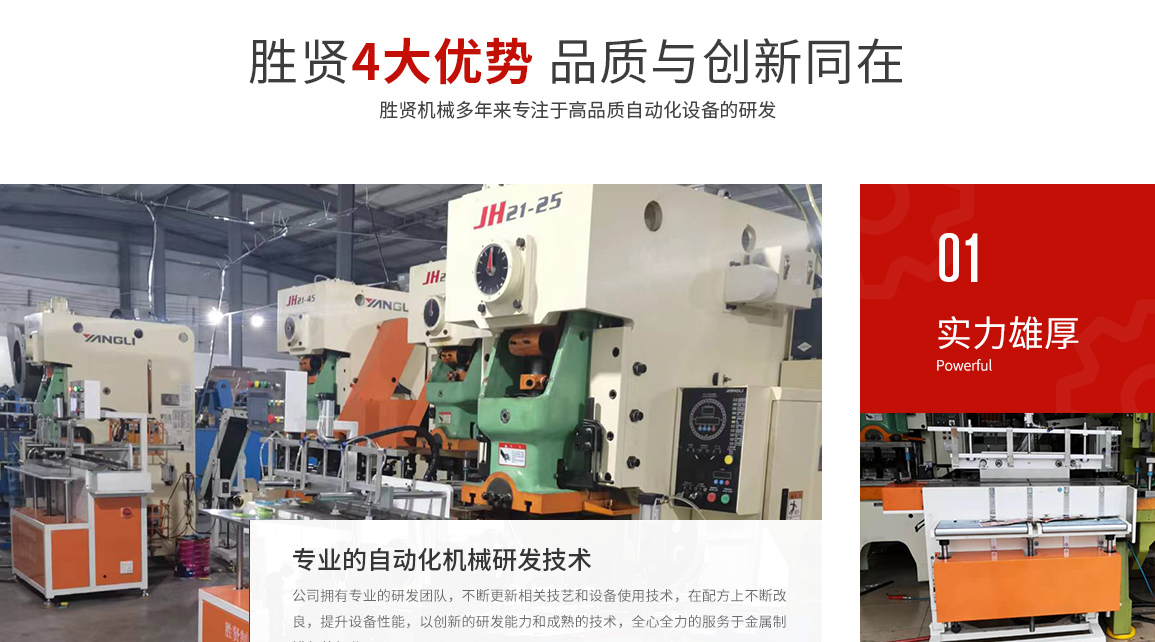 東莞市勝賢機(jī)械設(shè)備有限公司,是一家專業(yè)從事金屬制罐包裝行業(yè)的整套自動化設(shè)備和模具開發(fā)、制造與銷售的公司,擁有成熟的技術(shù)和創(chuàng)新開發(fā)能力。我們擁有有一批多年從事設(shè)計、研究開發(fā)的工程師,和設(shè)備、模具制作的技術(shù)人才。不斷推進(jìn)制罐行業(yè)向高效、環(huán)保、節(jié)能、操作簡易化的方向發(fā)展。 公司主要產(chǎn)品:多次元機(jī)械手設(shè)備生產(chǎn):含片盒蓋/底自動生產(chǎn)線,煙盒蓋/底自動生產(chǎn)線,醫(yī)藥盒蓋/底自動生產(chǎn)線,茶葉罐蓋圈/酒罐蓋圈自動生產(chǎn)線,酒罐蓋自動生產(chǎn)線、茶葉罐拍底自動生產(chǎn)線等等。 罐身自動扣骨機(jī)生產(chǎn):茶葉罐/酒罐/化妝品罐/內(nèi)衣罐等等. 其中多次元機(jī)械手專為兩片盒的生產(chǎn)和三片罐的蓋、底、蓋圈、拍底蓋等的生產(chǎn)而設(shè)計,...